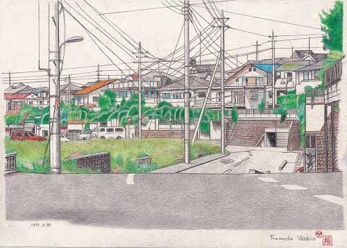 まちの記憶は、四街道市内のかつての風景と、その場所にまつわるエピソードを添えたコラムです。四街道市に生まれ育ち、その地で70年以上暮らしている画家の福田芳生が、記憶をたどりながら描いた色鉛筆画とテキストで綴ります。(絵・文:福田芳生)まちの記憶について